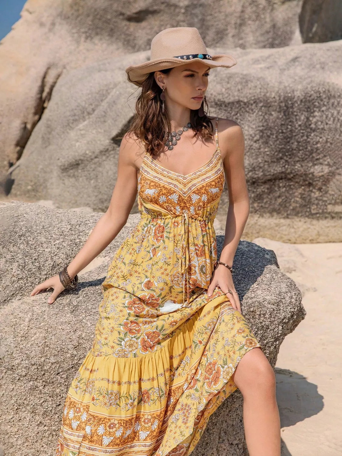 Tassel Printed Tiered Cami Dress