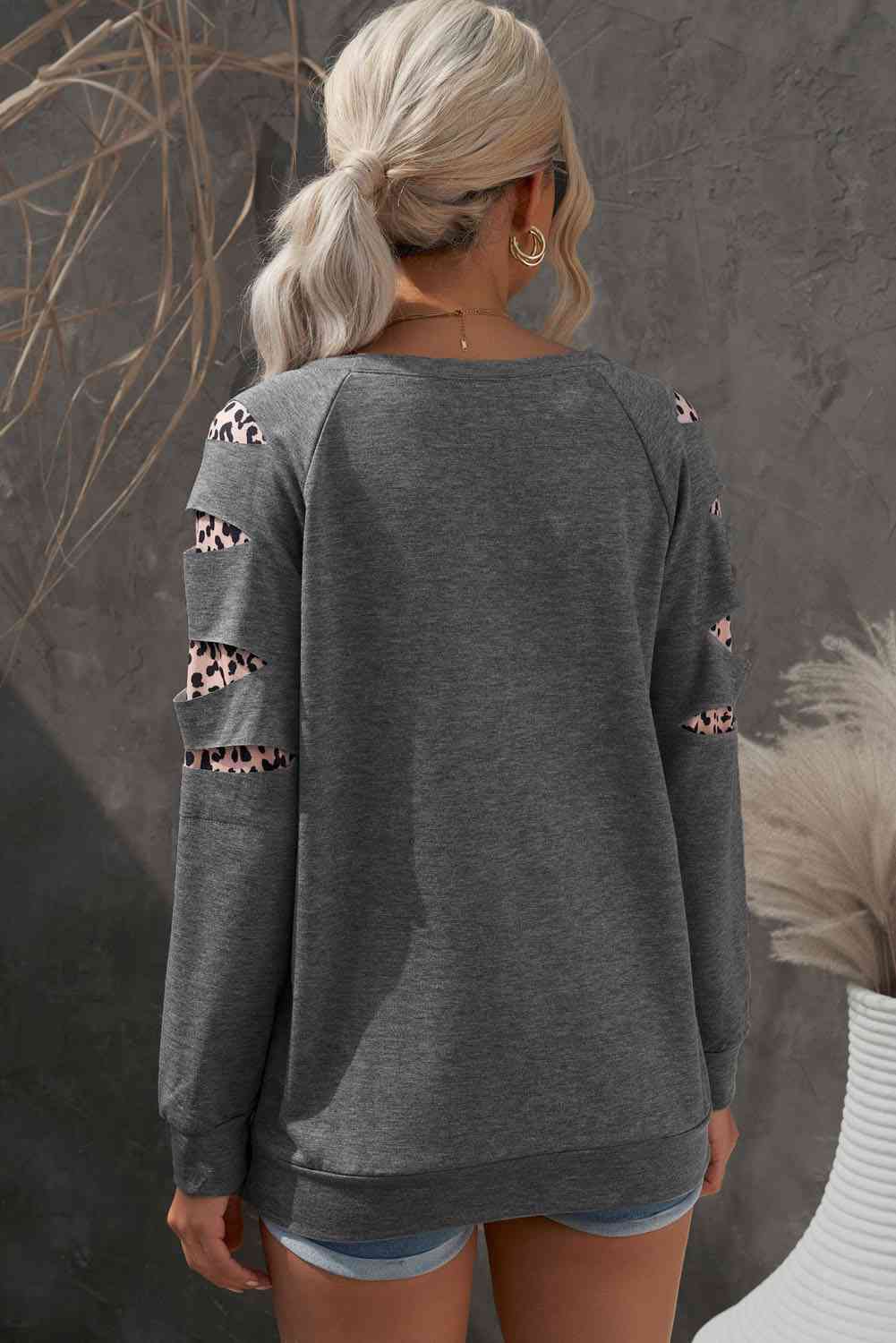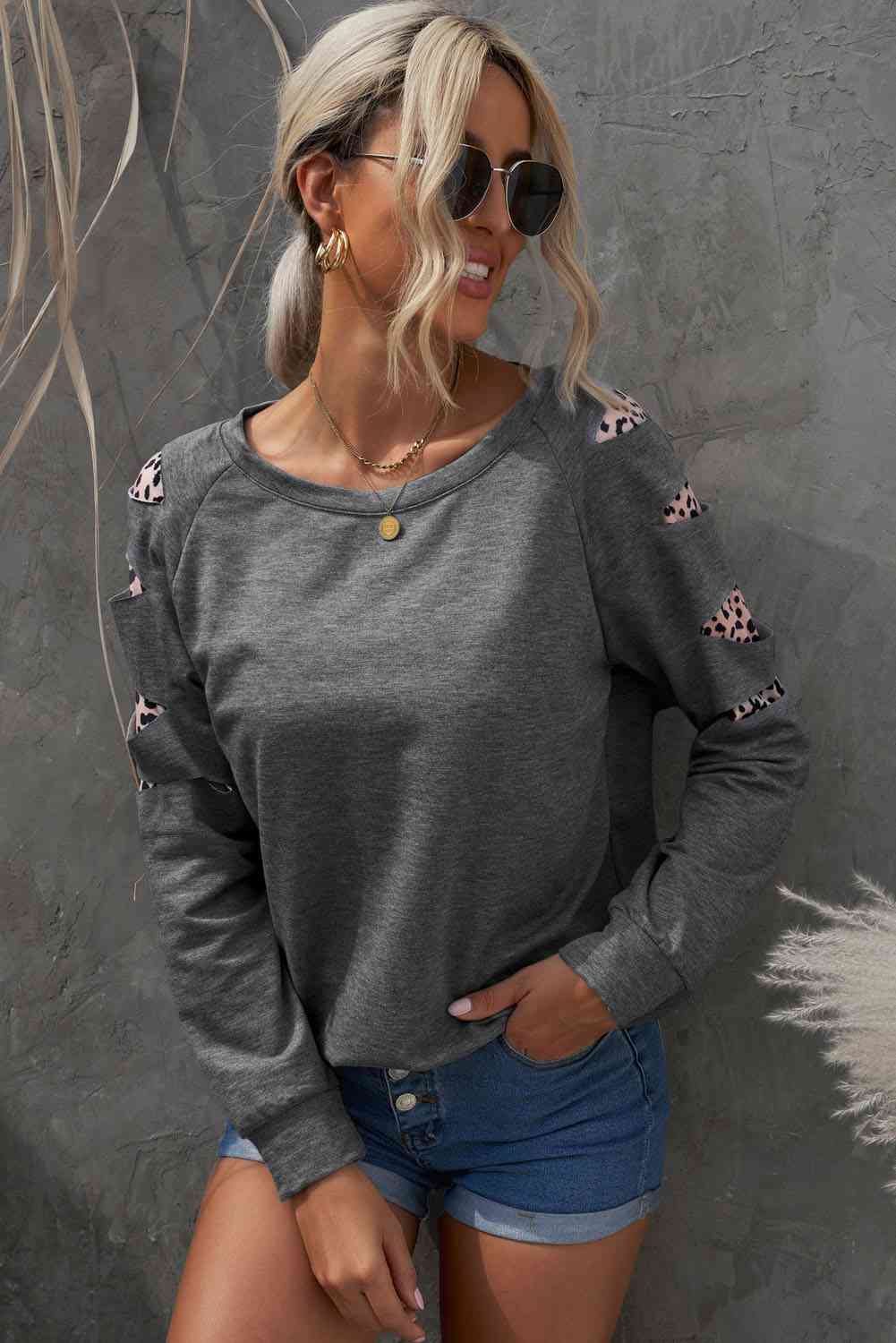 Leopard Patchwork Raglan Sleeve Sweatshirt