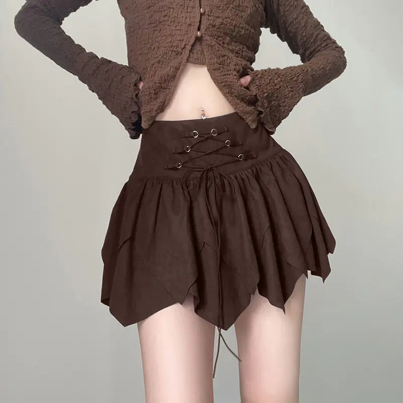 Embrace your unique style with our Women's Irregular Lace-up Waist Skirt. This stunning piece is designed to elevate your wardrobe and make a statement wherever you go. The rich brown color adds a touch of elegance, while the irregular lace-up waist gives it a flair that is both trendy and chic.