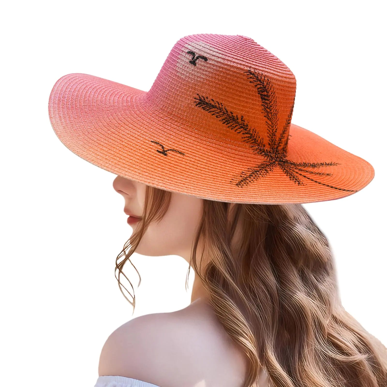 Yunkctuk Womens Beach Floppy Sun Hat Summer Straw Hat Wide Brim UPF 50 Hats Foldable Sunhats for Women Men UV Protection Packable Fashionable Printed Travel Hats